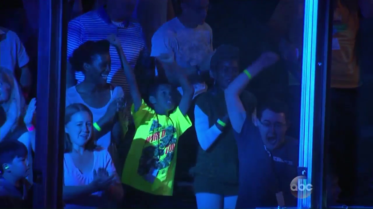 Sam gets the audience hyped and I make the first of my many background appearances this season. If you look closely, next to the guy on the left holding up what is literally a sign with a fucking furry stripper on it there’s a guy in a red shirt clapping like a maniac. I’m directly camera left of him. Hi!