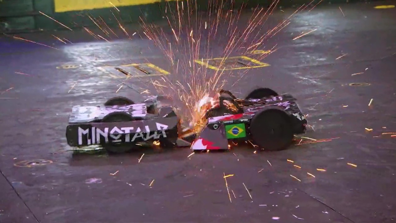 I feel like this is the Desperado final that the showrunners were praying would happen. The fact that we’ve heard the phrase “The Battle of Brazil” uttered no less than a dozen goddamned times in just the last few minutes lends credence to the notion that they had this one in their back pocket the minute the brackets were drawn up. Not trying to insinuate that there’s foul play afoot though because each of these robots had two opportunities where they could’ve been stopped dead in their tracks before making it to this point. Minotaur and Black Dragon fought hard to make it here and their respective teams ought to be proud of themselves for it even if the match is being played up in a silly way. The heaving lifting to reach the finals fell upon Minotaur who had to beat the life out of Lucky and End Game but at least we got proof that Minotaur was still at the top of its game and just needed some extra time to warm up. Black Dragon is impressive and has given us some killer blows in just the few fights we’ve seen from it this year… but c’mon, Captain Shrederator? And War Hawk’s radio just crapped out in the semifinals. Black Dragon still definitely had the upper hand in that battle but in a parallel universe where Rob Farrow used Duracell batteries instead of those ghetto “Dynacell” ones you can get from AliExpress it had to work a little harder for that win.