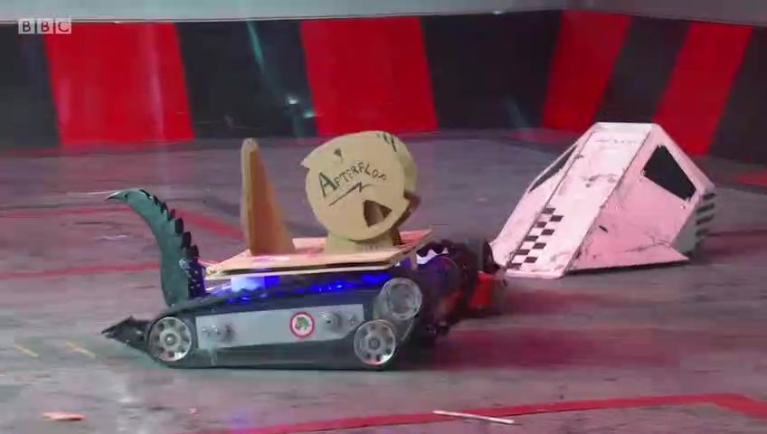 CARBIDE — If you’re an unoriginal type you probably refer to this robot as “the British Tombstone”. Don’t worry, I’m guilty of that too. The name just caught on and while it was a noble observation two years ago these days everyone’s like “can we just shut the fuck up about Tombstone already horizontal spinners are gay”. Carbide is the reigning champion of Robot Wars this series after a run in series 9 that included a match where Carbide smacked an opponent so hard that the bot spun across the arena and broke the fucking wall. Sure, PP3D did that too, but that was with a full-sized opponent; Carbide punted a ~50kg clusterbot and managed to achieve the same goal. Real talk, I almost failed physics class but by my retard math that means Carbide had to fling that thing twice as hard. Carbide’s had some mega battles already in this series. In fact, Carbide’s heat played out virtually identically to last year’s Grand Final; Carbide had to get through both Aftershock and Eruption to qualify. Eruption made it into the consolation rumble, but Aftershock is toast. The reigning champion keeps doling out the hits and they don’t show any signs of stopping.