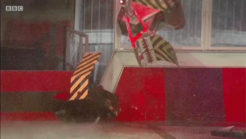 Eruption corrals Behemoth into the corner upside-down with the hopes that the bulldozer will expend all of its CO2 trying to right itself. When this doesn’t work Eruption goes back to just throwing it wherever the fuck it lands resulting in the Fog of War eventually getting activated. Behemoth’s team starts climbing onto the fucking glass to see where they are and shout directions to the driver to get out of the corner. The chaos just does not fucking stop. Eruption very clearly slams Behemoth directly into the Dial of Doom again and nothing happens because the people in charge of it have just given the fuck up. Behemoth is thrown through the pyrotechnics hidden near the floor spikes and gets thrashed by Matilda’s disc sending the flipper twisting and turning in the air but guess what THIS DOES FUCKING NOTHING because Behemoth eventually gets back onto its wheels and continues to fight like a fucking tornado. Eruption proceeds to try and throw Behemoth out of the ring at least six fucking times and fails on absolutely every count because that’s not how this fight is destined to end.